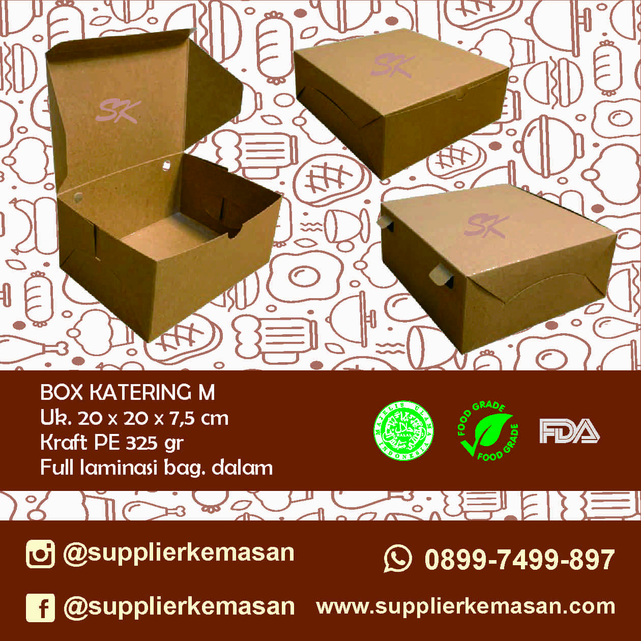 • Bahan : Kraft PE 325 gsm (Food grade)