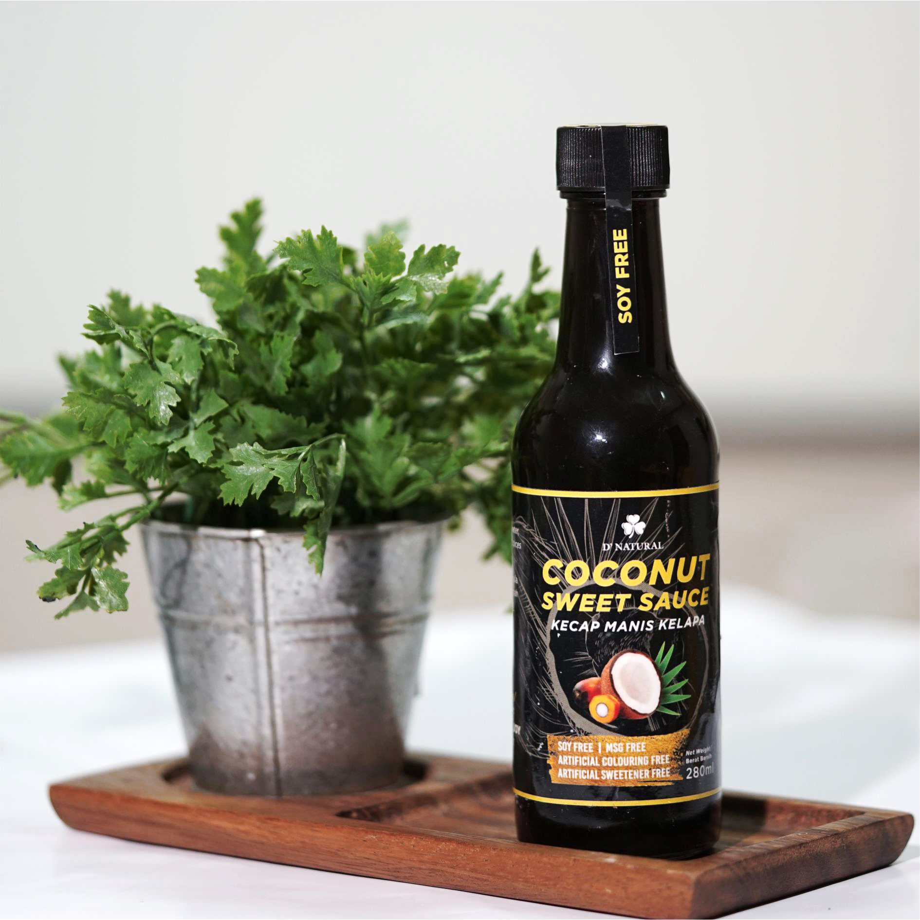 Organic Healthy Sweet Sauce (Kecap Manis Sehat Organik) - NOT from Soy. It is made from healthy, organic, natural premium ingredients. It is made from Organic Coconut Sugar, which is LOW GI Index; thus, its a safe alternative for blood sugar health. It also contains some spices, which are good for health. NO SOY (Tidak Mengandung Kedelai) NO MSG (Tanpa MSG) NO synthetic preservatives (TANPA Pengawet Sintetik) NO synthetic sweeteners (TANPA Pemanis Sintetik) NO synthetic flavorings (TANPA Pewarna Sintetik) NO synthetic chemicals (TANPA bahan2 Kimia Sintetis) Gluten-free (Bebas Tepung Terigu) Refined sugar free (Bebas Gula Pasir)