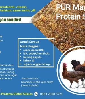 Pakan ternak berbahan Maggot BSF dan di olah dg campuran lainnya spt tepung jagung, kepala ikan, ikan impun, bungkil kelapa dan bahan organik alami lainnya.