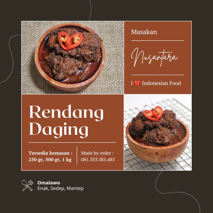 Rendang daging sapi khas dari Omalawo, dibuat dari daging sapi pilihan, bahan rempah yang fresh dan diolah dengan baik.