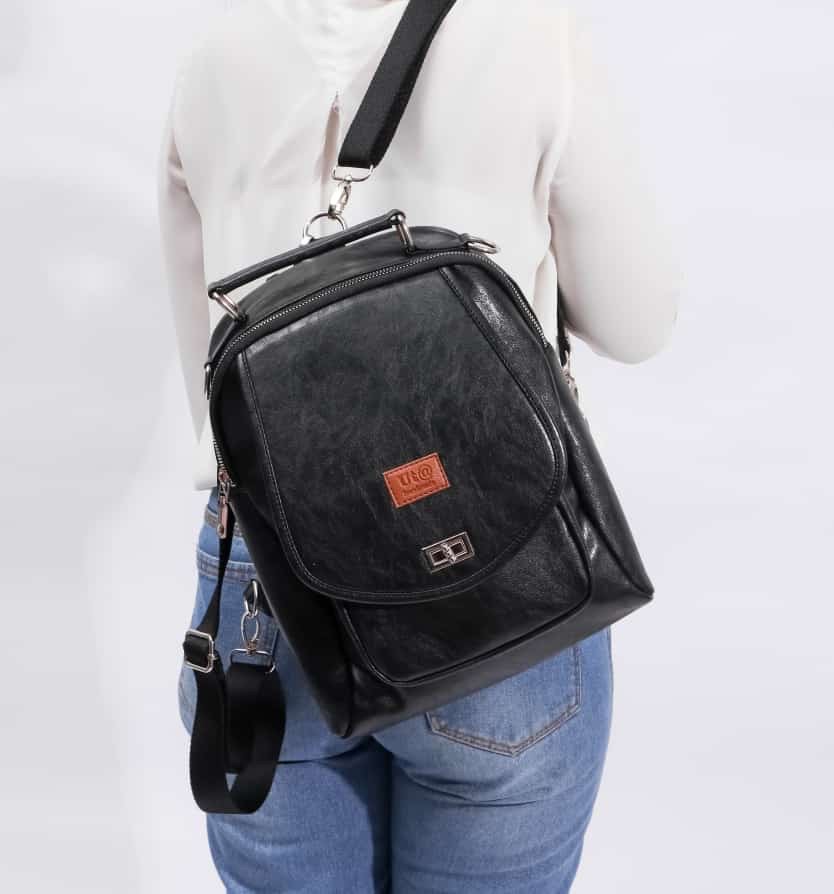Tas punggung bisa untuk selempang terbuat dari kulit sintesis yang halus dan tahan air